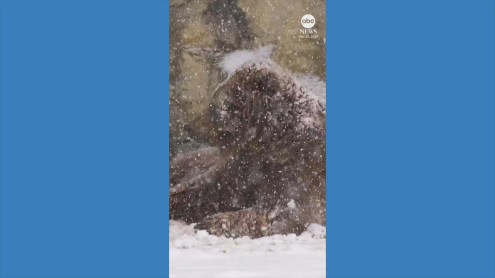 A resident bear at Brookfield Zoo Chicago took delight in the fresh snowfall over the weekend, rolling around in the snow.