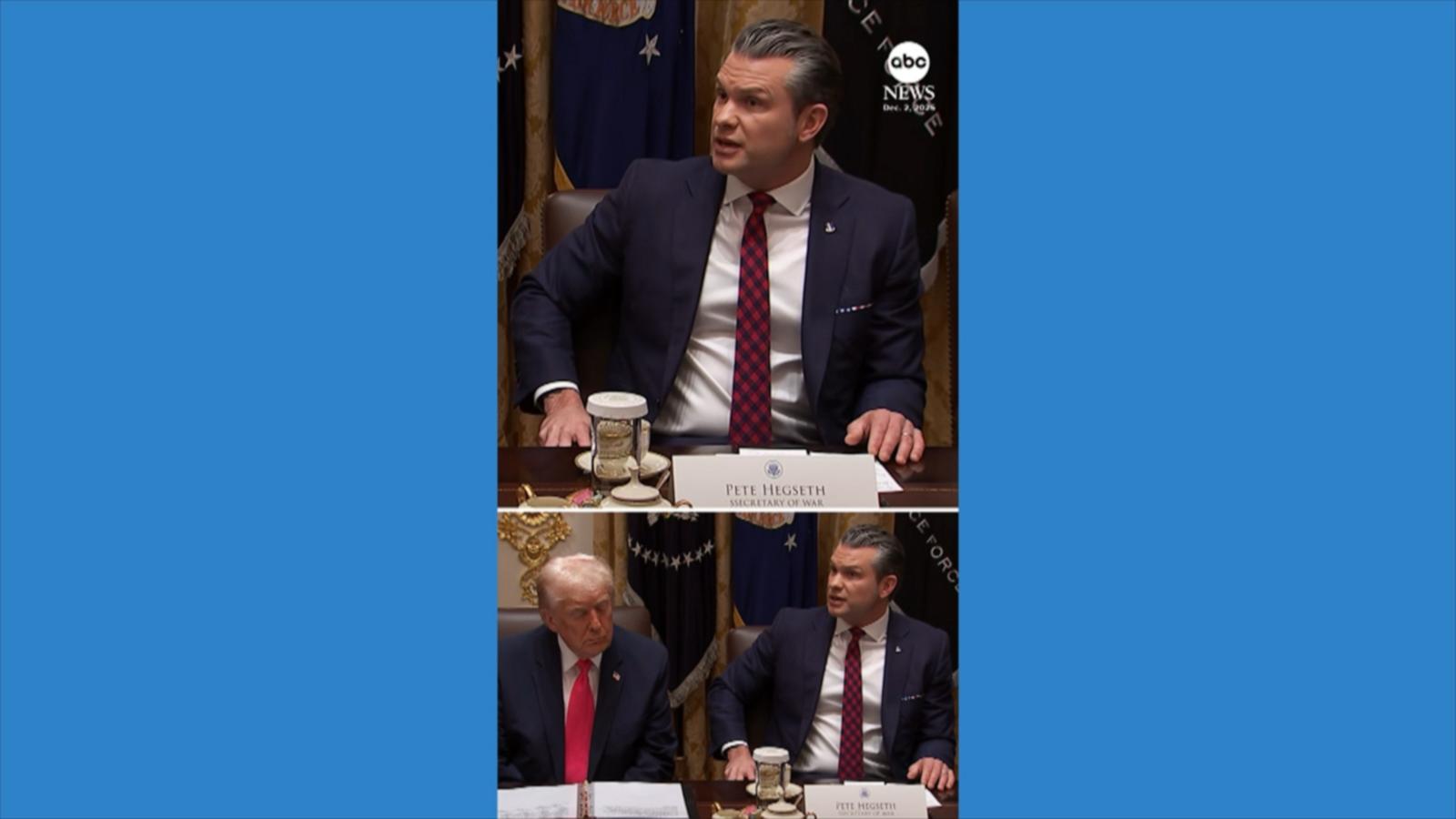 During Tuesday’s Trump cabinet meeting, Hegseth said that “we’ve only just begun” striking alleged drug boats, adding that narco-terrorists will be put “at the bottom of the ocean.”