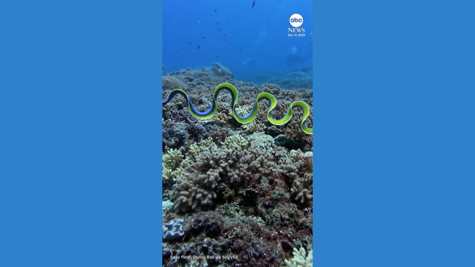 Divers were treated to an unusual sight in the waters near Bali: a blue ribbon eel gracefully undulating through the sea.